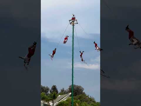 They climbed up, wound their ropes around, then lean over backwards while they float to the ground around and around!